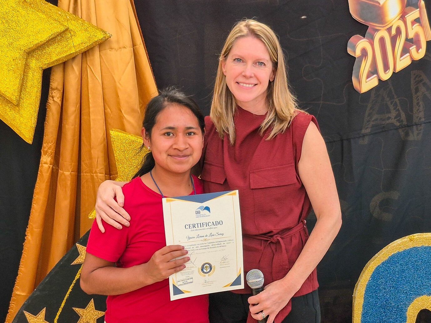 Yesi receiving a certificate in organizational culture, 2025.